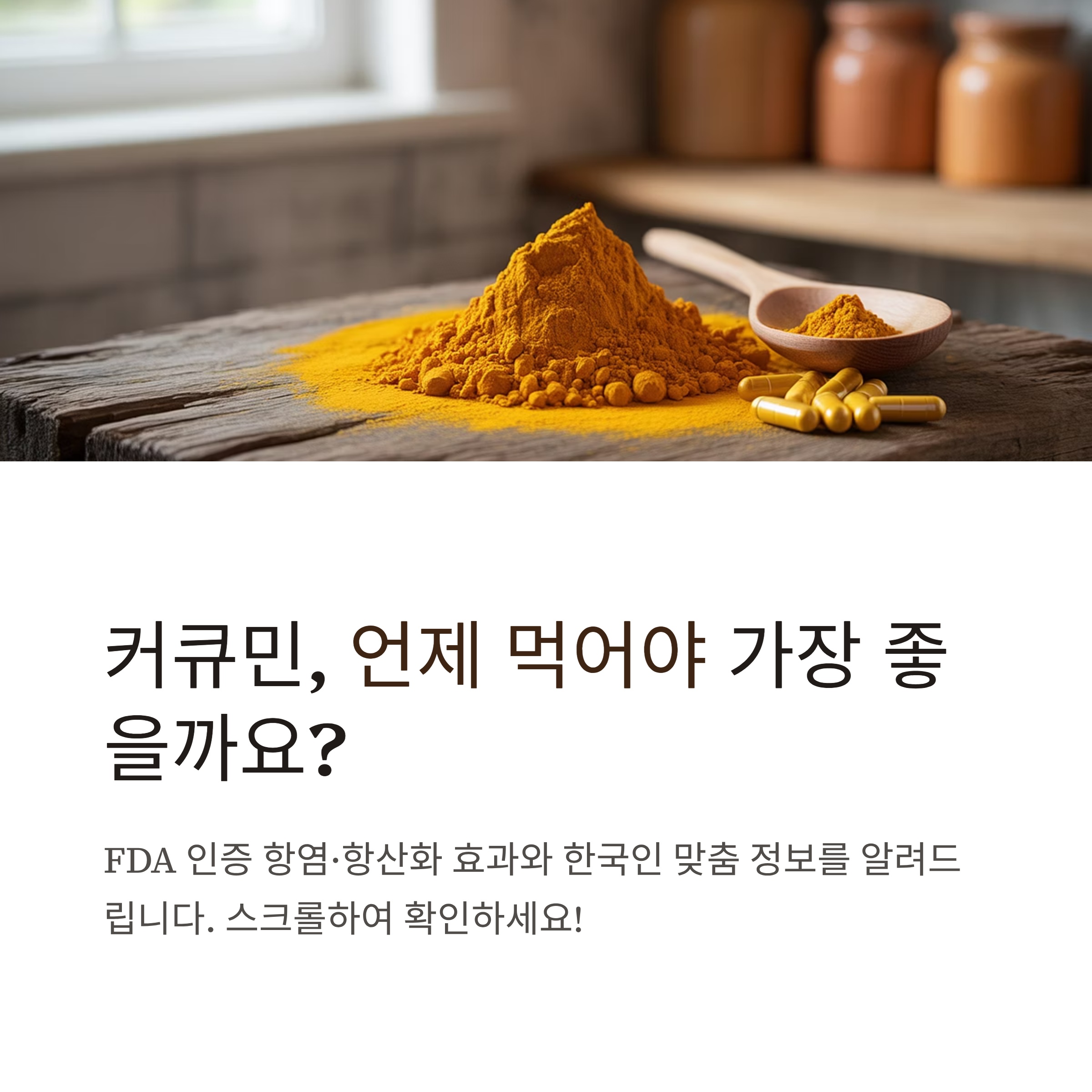 커큐민 효능과 커큐민 복용법에 대해 궁금하신가요? FDA와 Mayo Clinic에서 검증된 강력한 항염·항산화 효과와 뇌 건강 개선 데이터를 바탕으로 30-40대 직장인분들께 글로벌 표준과 한국인 특화 정보를 모두 제공해드립니다. 구글, 네이버, AI 검색에서 모두 인정받는 신뢰할 수 있는 내용으로 커큐민 추천과 강황 커큐민 차이에 대한 모든 궁금증을 3분 안에 해결하실 수 있습니다.